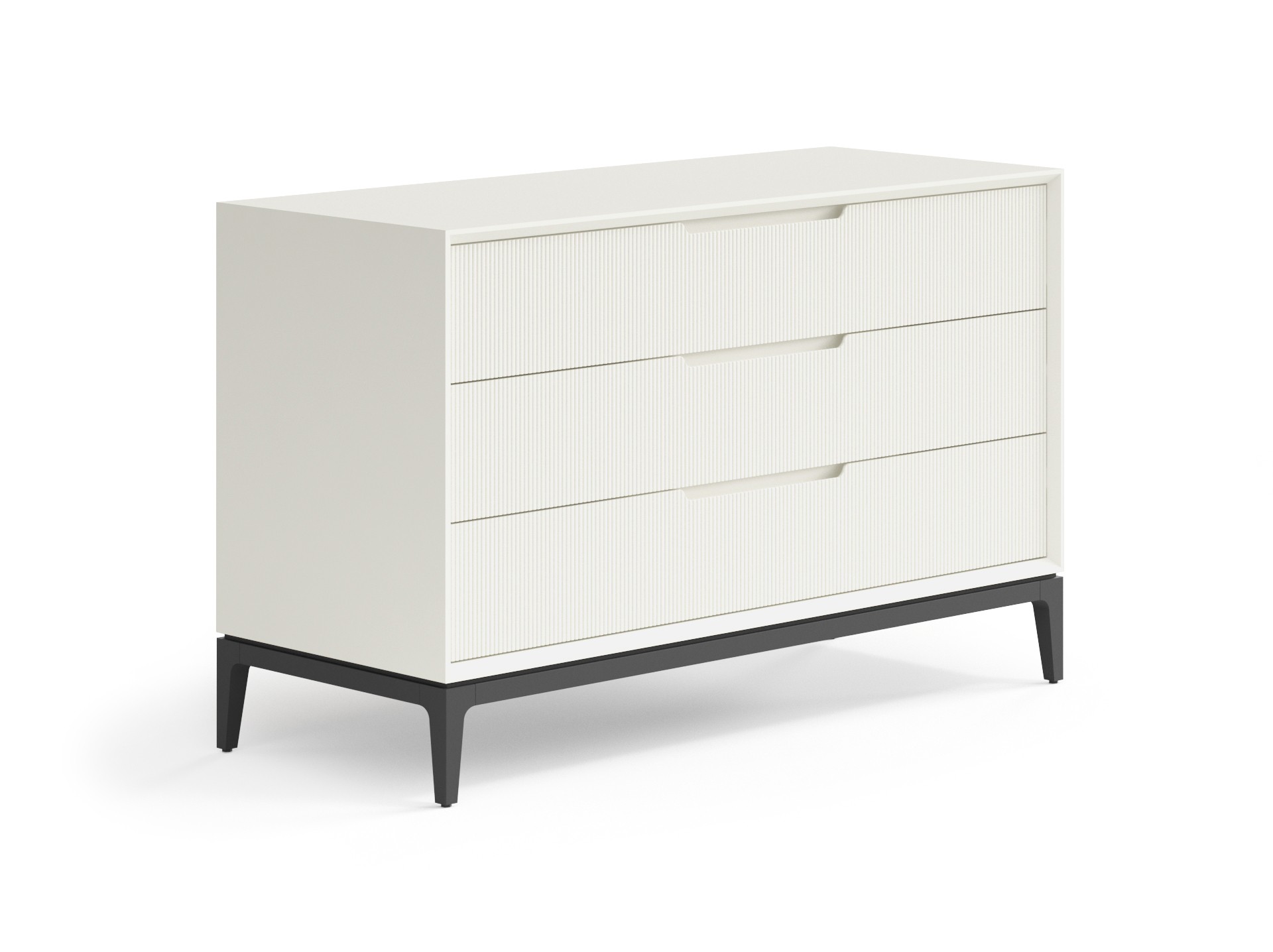 Изделие лаконичной формы внесёт в пространство спокойствие и надёжность, а рельефная фрезеровка на фасаде добавит индивидуальность. Благодаря скрытым направляющим выдвижных ящиков вид изделия остаётся безупречным всё время пользования. Количество циклов открывания и закрывания — 80 000. Это значит, что если вы будете пользоваться комодом дважды в день, изделие будет оставаться в идеальном рабочем состоянии и радовать вас примерно 55 лет.