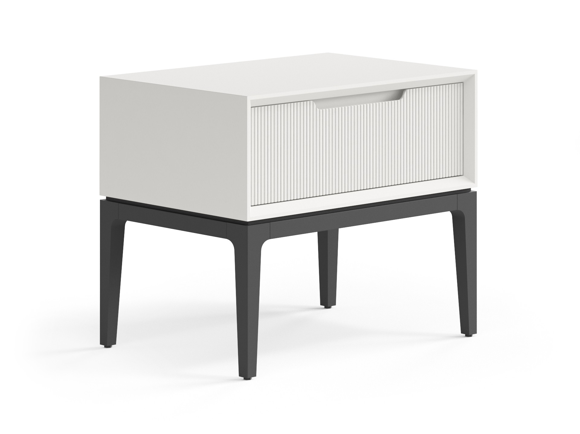 Стильная тумба гармонично впишется в интерьер спальни. Опоры, как и фасад изделия, выполнены из массива. Ножки могут быть древесными в цвет корпуса или же в чёрном матовом покрытии эмалью — любое решение будет выглядеть элегантно и современно. Рельефная фрезеровка на фасаде приятна на вид и на ощупь, придаёт изделию индивидуальность и характер. Фрезерованная ручка выполнена специально для удобного захвата, а механизм продуман до мелочей — тихий и плавный, он делает ежедневное пользование изделием максимально комфортным.