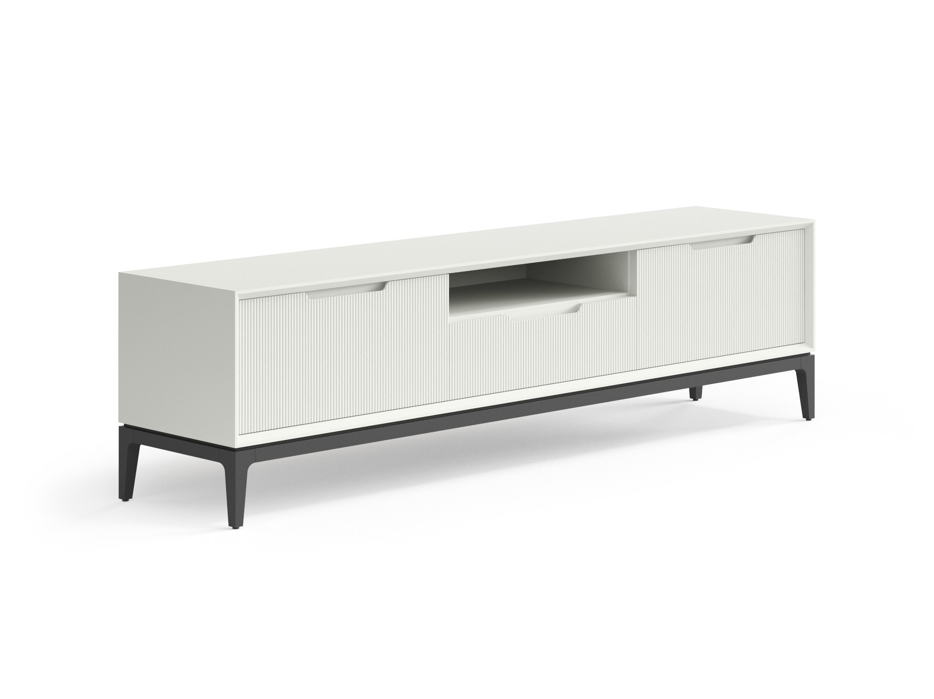 Стильная ТВ тумба гармонично впишется в вашу гостиную и сделает зону отдыха приятной и комфортной. Боковые дверцы и центральный выдвижной ящик позволят разместить все необходимые вещи за фасадами с рельефной фрезеровкой. Ничто не будет отвлекать вас от отдыха и просмотров любимых фильмов.