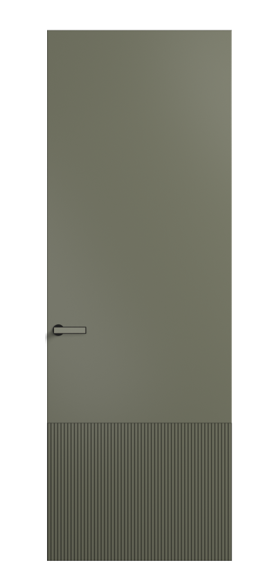 Это полотна с рельефной фрезеровкой. Этот прием делает интерьер объемным, тактильным, вносит интересную текстуру и создает современный образ. Волнистый рельеф может быть выполнен по ламелям из массива дуба в древесных матовых отделках, либо исполнен по натуральному и экологически безопасному материалу — ХДФ, покрытому гладкой эмалью актуальных оттенков.