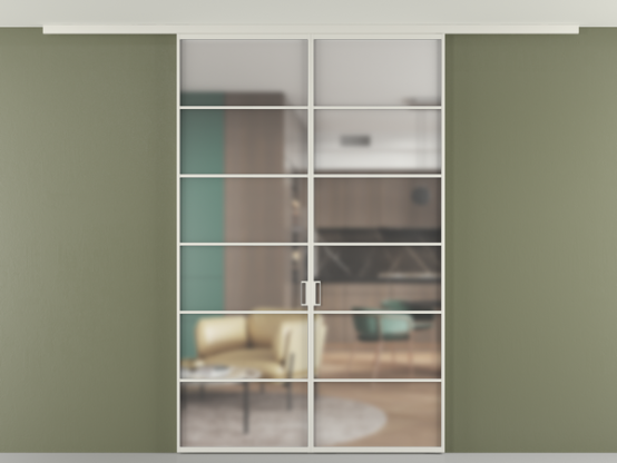 Во всех алюминиевых перегородках, независимо от типа установки, используется компланарный раздвижной механизм, благодаря которому декоративная крышка и полотно находятся в одной плоскости.