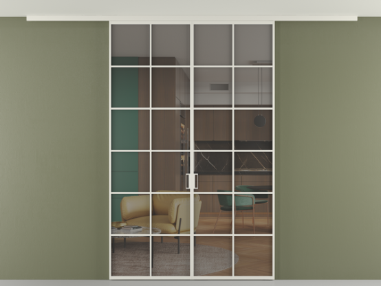 Алюминиевые перегородки имеют единый профиль с алюминиевыми дверьми и легко сочетаются в одном пространстве, не перегружая его. Также их можно комбинировать в интерьере с полотнами из нашего стандартного ассортимента. Помимо этого, система алюминиевых перегородок и дверей координируется со стеновыми панелями Волховец.
