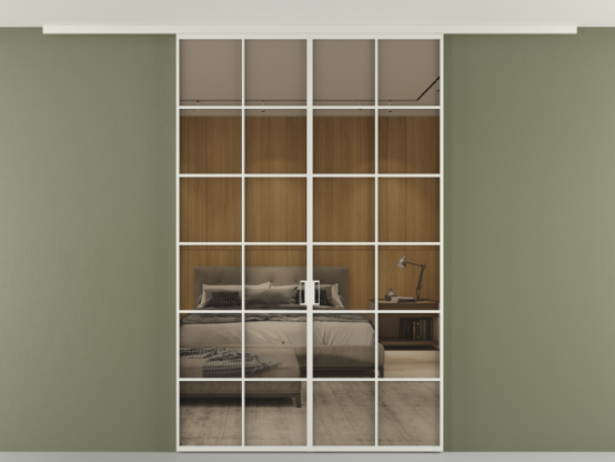 Во всех алюминиевых перегородках, независимо от типа установки, используется компланарный раздвижной механизм, благодаря которому декоративная крышка и полотно находятся в одной плоскости.