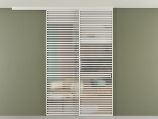 Во всех алюминиевых перегородках, независимо от типа установки, используется компланарный раздвижной механизм, благодаря которому декоративная крышка и полотно находятся в одной плоскости.