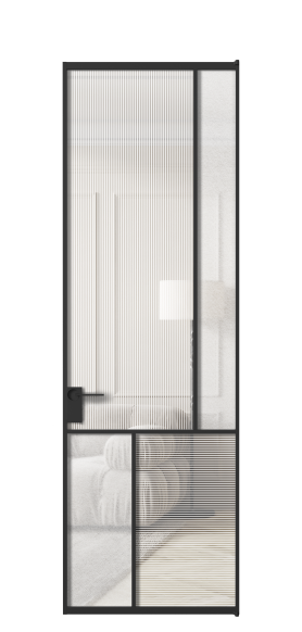АЛПЛ041.21 Алюминий Черный Рифлёное стекло "Дюна", триплекс, 6 мм + Фактурное стекло "Лёд", триплекс