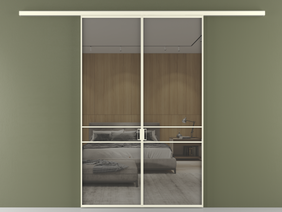 Во всех алюминиевых перегородках, независимо от типа установки, используется компланарный раздвижной механизм, благодаря которому декоративная крышка и полотно находятся в одной плоскости.