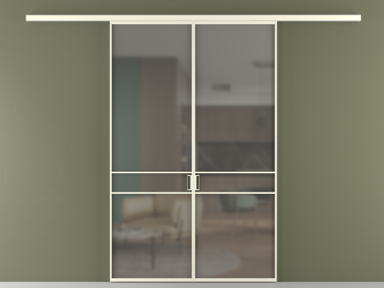 Во всех алюминиевых перегородках, независимо от типа установки, используется компланарный раздвижной механизм, благодаря которому декоративная крышка и полотно находятся в одной плоскости.