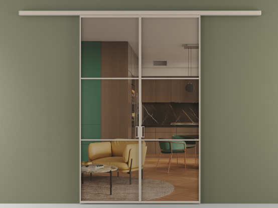 Алюминиевые перегородки имеют единый профиль с алюминиевыми дверьми и легко сочетаются в одном пространстве, не перегружая его. Также их можно комбинировать в интерьере с полотнами из нашего стандартного ассортимента. Помимо этого, система алюминиевых перегородок и дверей координируется со стеновыми панелями Волховец.
