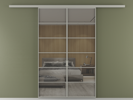 Во всех алюминиевых перегородках, независимо от типа установки, используется компланарный раздвижной механизм, благодаря которому декоративная крышка и полотно находятся в одной плоскости.