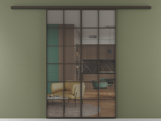 Алюминиевые перегородки имеют единый профиль с алюминиевыми дверьми и легко сочетаются в одном пространстве, не перегружая его. Также их можно комбинировать в интерьере с полотнами из нашего стандартного ассортимента. Помимо этого, система алюминиевых перегородок и дверей координируется со стеновыми панелями Волховец.