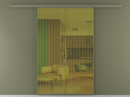 Дополнительно на раздвижную двустворчатую перегородку вдоль стены и четырёхстворчатую перегородку внутри проёма с двумя неподвижным полотнами можно установить механизм синхронного открывания — при открывании одной створки, вторая открывается автоматически.