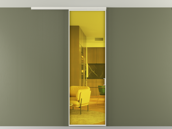 Мы предлагаем девять вариантов декоративного стекла: от кристально-прозрачного до матовых цветных, а также стёкла с эффектом Stopsol, когда лицевая сторона стекла зеркальная, но при включенном освещении за стеклом — становится прозрачной.