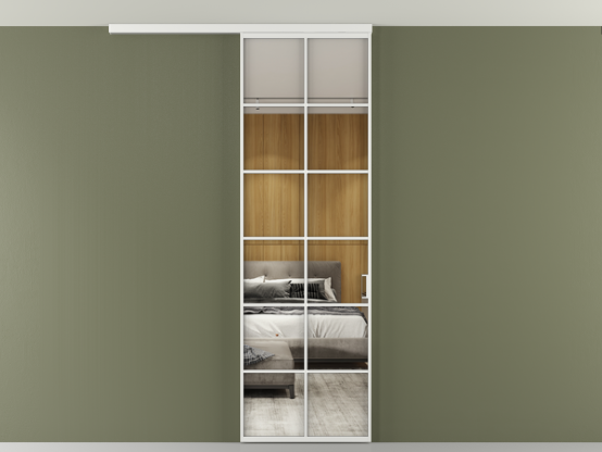 Во всех алюминиевых перегородках, независимо от типа установки, используется компланарный раздвижной механизм, благодаря которому декоративная крышка и полотно находятся в одной плоскости.