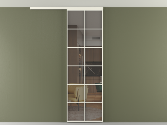 Во всех алюминиевых перегородках, независимо от типа установки, используется компланарный раздвижной механизм, благодаря которому декоративная крышка и полотно находятся в одной плоскости.