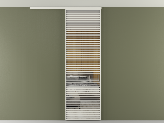 Во всех алюминиевых перегородках, независимо от типа установки, используется компланарный раздвижной механизм, благодаря которому декоративная крышка и полотно находятся в одной плоскости.