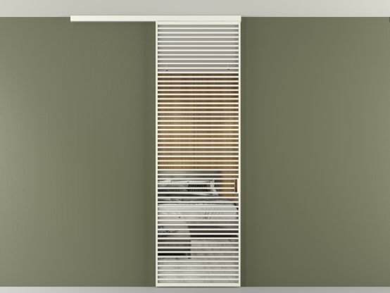 Во всех алюминиевых перегородках, независимо от типа установки, используется компланарный раздвижной механизм, благодаря которому декоративная крышка и полотно находятся в одной плоскости.