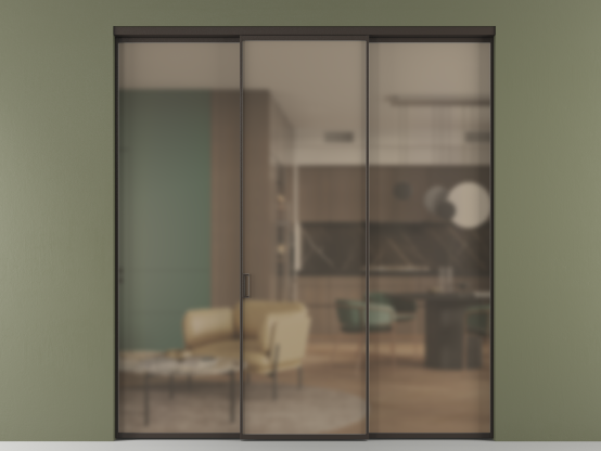Во всех алюминиевых перегородках, независимо от типа установки, используется компланарный раздвижной механизм, благодаря которому декоративная крышка и полотно находятся в одной плоскости.