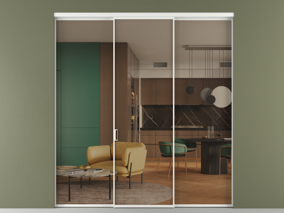 Во всех алюминиевых перегородках, независимо от типа установки, используется компланарный раздвижной механизм, благодаря которому декоративная крышка и полотно находятся в одной плоскости.