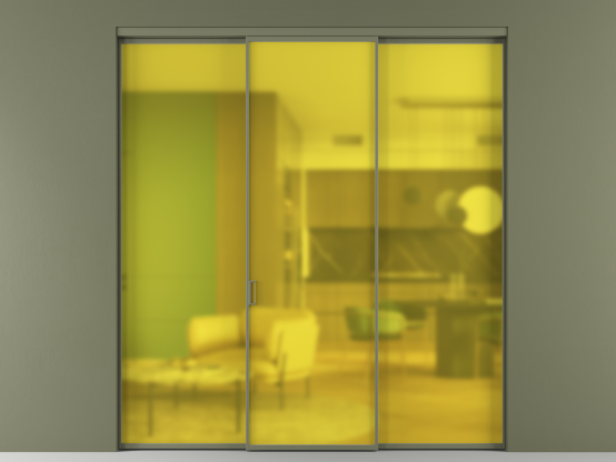 АЛПР 040.01. Алюминий оливковый тёмный Сатинированное жёлтое стекло, триплекс, 6мм