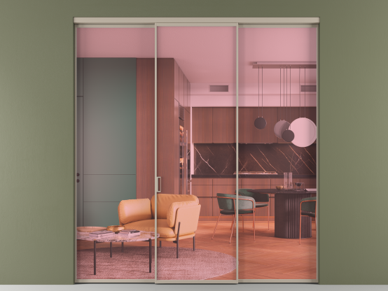 Во всех алюминиевых перегородках, независимо от типа установки, используется компланарный раздвижной механизм, благодаря которому декоративная крышка и полотно находятся в одной плоскости.