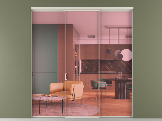 Во всех алюминиевых перегородках, независимо от типа установки, используется компланарный раздвижной механизм, благодаря которому декоративная крышка и полотно находятся в одной плоскости.