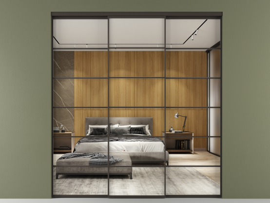 Во всех алюминиевых перегородках, независимо от типа установки, используется компланарный раздвижной механизм, благодаря которому декоративная крышка и полотно находятся в одной плоскости.