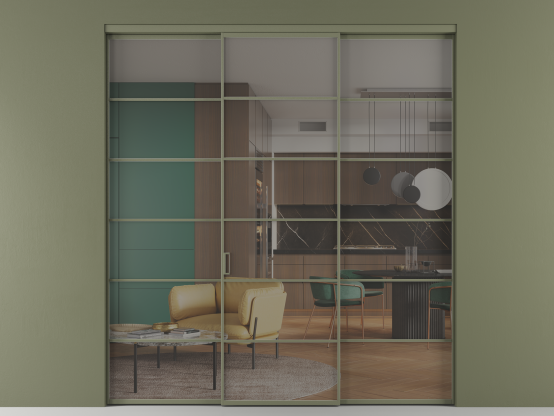 Алюминиевые перегородки имеют единый профиль с алюминиевыми дверьми и легко сочетаются в одном пространстве, не перегружая его. Также их можно комбинировать в интерьере с полотнами из нашего стандартного ассортимента. Помимо этого, система алюминиевых перегородок и дверей координируется со стеновыми панелями Волховец.