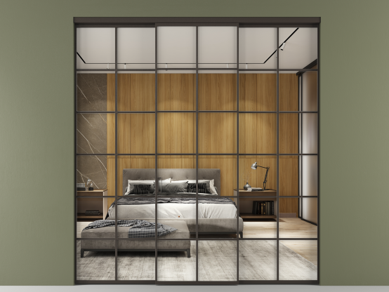 Алюминиевые перегородки имеют единый профиль с алюминиевыми дверьми и легко сочетаются в одном пространстве, не перегружая его. Также их можно комбинировать в интерьере с полотнами из нашего стандартного ассортимента. Помимо этого, система алюминиевых перегородок и дверей координируется со стеновыми панелями Волховец.