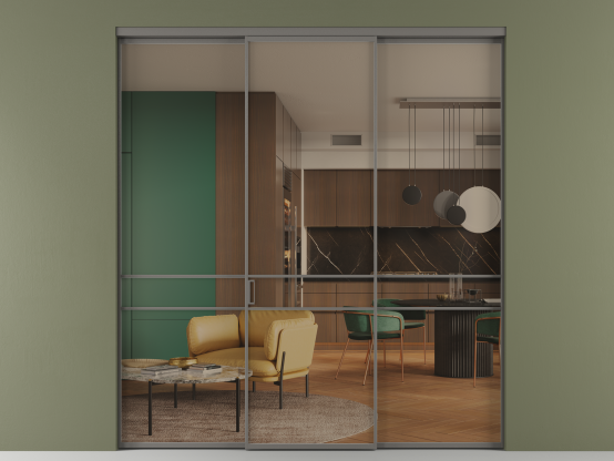 Алюминиевые перегородки Formato — это стильное и функциональное решение для современных интерьеров, предназначенное для разделения и зонирования пространства внутри одного помещения. Перегородки изготавливаются под индивидуальные размеры с шагом в 1 мм, что даёт возможность подобрать оптимальное соотношение размеров и количества створок, в том числе и для нестандартных проёмов.