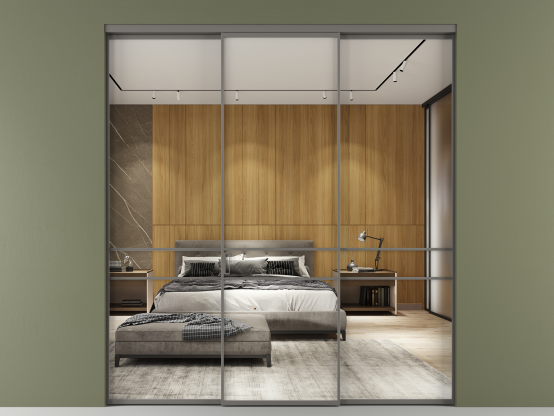 Во всех алюминиевых перегородках, независимо от типа установки, используется компланарный раздвижной механизм, благодаря которому декоративная крышка и полотно находятся в одной плоскости.