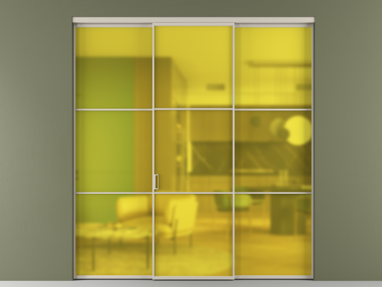 Во всех алюминиевых перегородках, независимо от типа установки, используется компланарный раздвижной механизм, благодаря которому декоративная крышка и полотно находятся в одной плоскости.