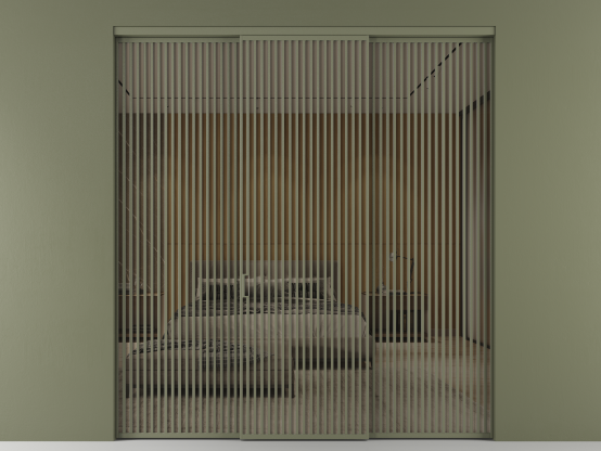 Во всех алюминиевых перегородках, независимо от типа установки, используется компланарный раздвижной механизм, благодаря которому декоративная крышка и полотно находятся в одной плоскости.