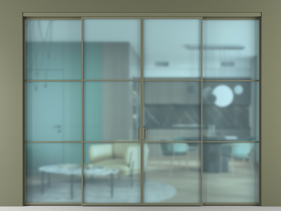 Во всех алюминиевых перегородках, независимо от типа установки, используется компланарный раздвижной механизм, благодаря которому декоративная крышка и полотно находятся в одной плоскости.