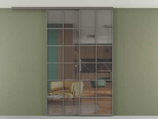 Во всех алюминиевых перегородках, независимо от типа установки, используется компланарный раздвижной механизм, благодаря которому декоративная крышка и полотно находятся в одной плоскости.