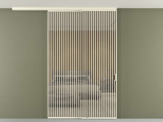 Перегородка Формато вдоль стены на потолок 2 створки с синхронным механизмом