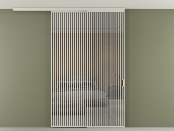 Перегородка Формато вдоль стены на потолок 2 створки с синхронным механизмом