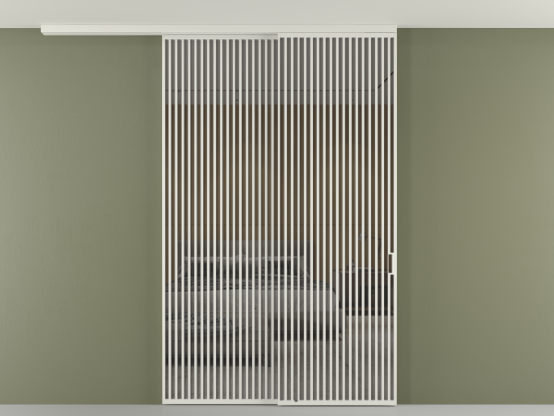 Во всех алюминиевых перегородках, независимо от типа установки, используется компланарный раздвижной механизм, благодаря которому декоративная крышка и полотно находятся в одной плоскости.