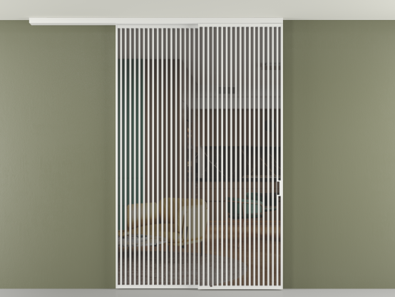 Перегородка Формато вдоль стены на потолок 2 створки с синхронным механизмом