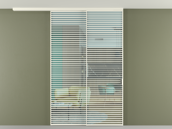 Дополнительно на раздвижную двустворчатую перегородку вдоль стены и четырёхстворчатую перегородку внутри проёма с двумя неподвижным полотнами можно установить механизм синхронного открывания — при открывании одной створки, вторая открывается автоматически.