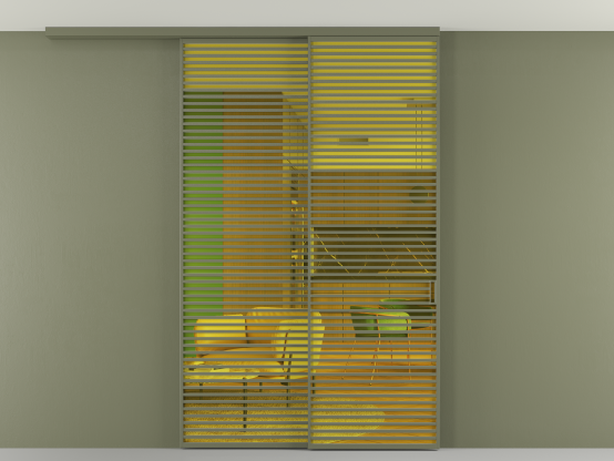 Во всех алюминиевых перегородках, независимо от типа установки, используется компланарный раздвижной механизм, благодаря которому декоративная крышка и полотно находятся в одной плоскости.
