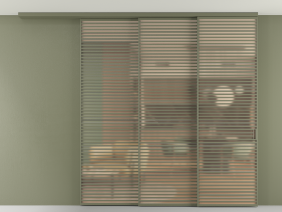 Дополнительно на раздвижную двустворчатую перегородку вдоль стены и четырёхстворчатую перегородку внутри проёма с двумя неподвижным полотнами можно установить механизм синхронного открывания — при открывании одной створки, вторая открывается автоматически.