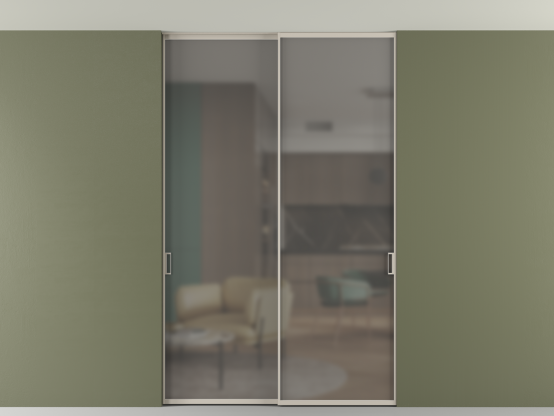 Во всех алюминиевых перегородках, независимо от типа установки, используется компланарный раздвижной механизм, благодаря которому декоративная крышка и полотно находятся в одной плоскости.