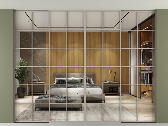 Алюминиевые перегородки имеют единый профиль с алюминиевыми дверьми и легко сочетаются в одном пространстве, не перегружая его. Также их можно комбинировать в интерьере с полотнами из нашего стандартного ассортимента. Помимо этого, система алюминиевых перегородок и дверей координируется со стеновыми панелями Волховец.
