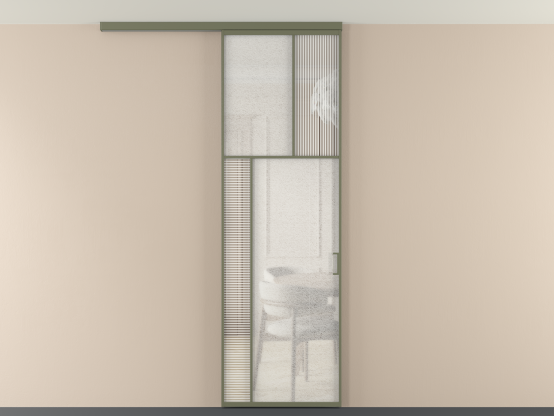 Во всех алюминиевых перегородках, независимо от типа установки, используется компланарный раздвижной механизм, благодаря которому декоративная крышка и полотно находятся в одной плоскости.
