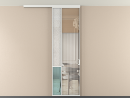 Во всех алюминиевых перегородках, независимо от типа установки, используется компланарный раздвижной механизм, благодаря которому декоративная крышка и полотно находятся в одной плоскости.