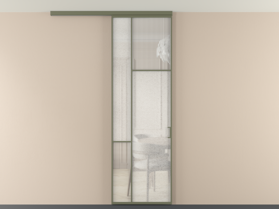 Во всех алюминиевых перегородках, независимо от типа установки, используется компланарный раздвижной механизм, благодаря которому декоративная крышка и полотно находятся в одной плоскости.
