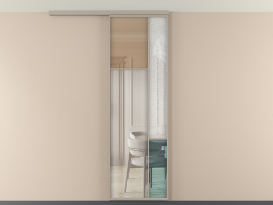 Во всех алюминиевых перегородках, независимо от типа установки, используется компланарный раздвижной механизм, благодаря которому декоративная крышка и полотно находятся в одной плоскости.