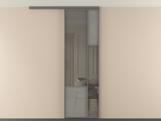 Во всех алюминиевых перегородках, независимо от типа установки, используется компланарный раздвижной механизм, благодаря которому декоративная крышка и полотно находятся в одной плоскости.