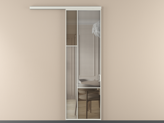 Во всех алюминиевых перегородках, независимо от типа установки, используется компланарный раздвижной механизм, благодаря которому декоративная крышка и полотно находятся в одной плоскости.