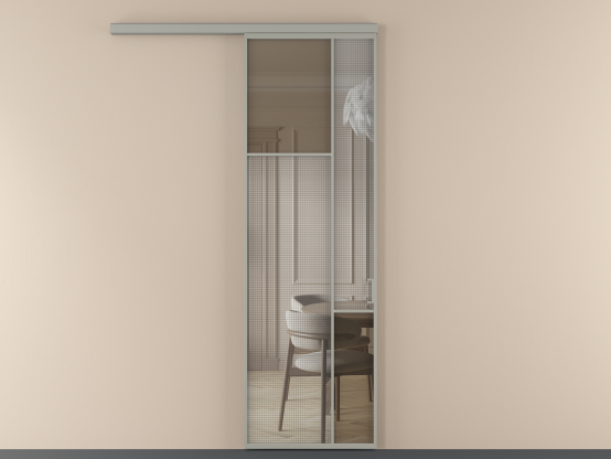 Во всех алюминиевых перегородках, независимо от типа установки, используется компланарный раздвижной механизм, благодаря которому декоративная крышка и полотно находятся в одной плоскости.